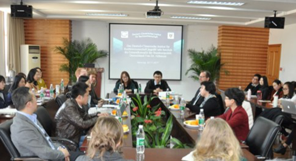 2017年11月16日上午,以知识产权法审判著称的、位于杜塞尔多夫(Duesseldorf)的德国北莱茵-威斯特法伦州高等法院司法代表团在院长Anne-Jose Paulsen女士率领下访问了我校中德法学研究所。中德法学研究所所长方小敏教...