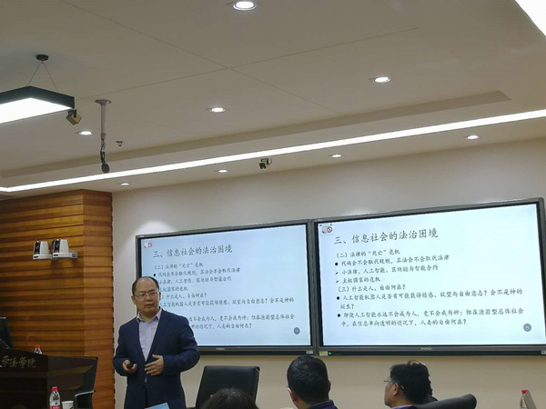 2019年4月23日晚,在色情网站 逸夫管理科学楼1205教室,中国社会科学院法学所支振锋教授为色情网站 师生带来了一场题为“信息时代的社会重构与法治变革”的讲座。本次讲座由色情网站 周安平教授主持,艾佳慧副教授参与会...