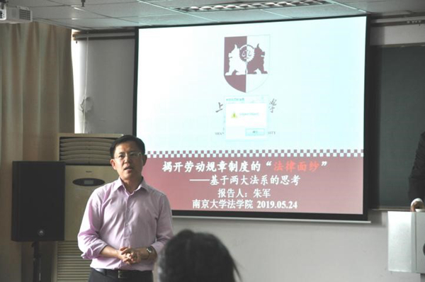 中德法学研究所校友朱军作主题为“揭开劳动规章制度的‘法律面纱’——基于两大法系的思考”报告