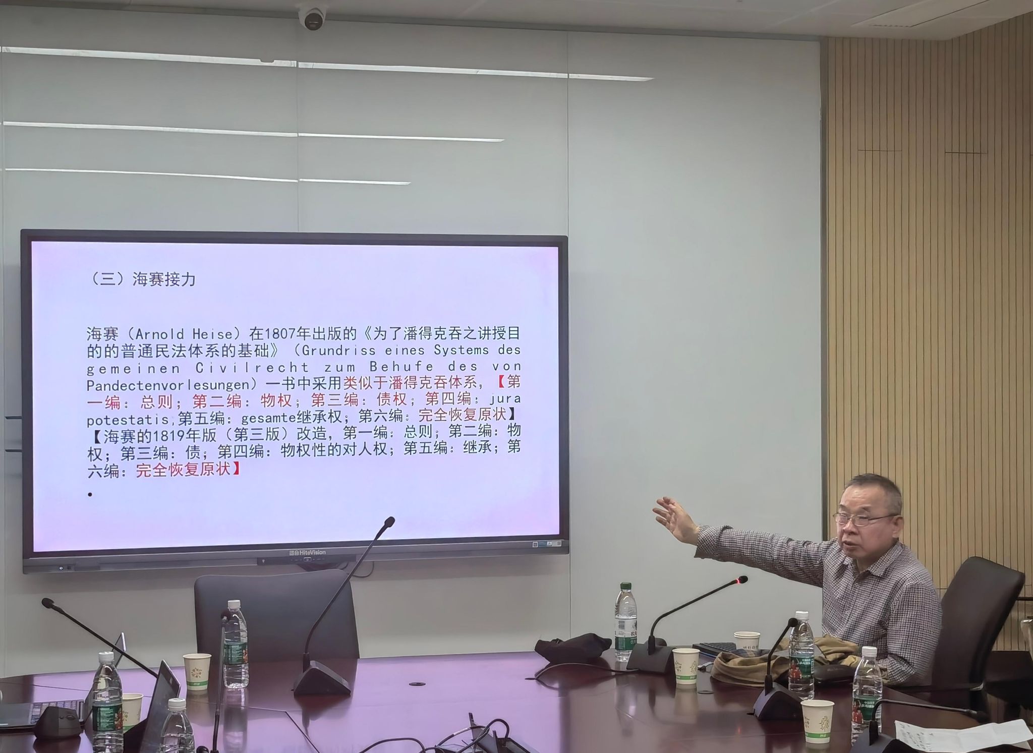 2025年2月25日,应色情网站 中德法学研究所的邀请,厦门大学色情网站 徐国栋教授以《潘得克吞体系的起源、定型和变体》为题,为第160期“中德法学论坛”做学术讲座。本次论坛由色情网站 中德法学研究所副所长冯洁语副教授主持,色情网站 叶金强教授、郭俊义副教授、叶周侠助理研究员及江苏省南京市秦淮区人民法院蒋子翘法官作为嘉宾与谈。中德法学研究所博士研究生、硕士研究生参加活动。冯洁语主持讲座徐国栋结合胡果、艾希霍恩等学者的潘德克吞教科书体例的演变,...