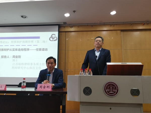 教授狄小华、江苏瑞格律师事务所主任、刑辩研究中心执行主任周金刚、北京市尚公(南京)律师事务所主任、刑辩研究中心副主任孙国强、北京市尚公(南京)律师事务所高级合伙人蔡栋、南京森林警察学院闾刚副教授在论坛主持、作主题报告或与谈。