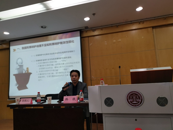 院长韩轶教授以“刑事辩护说理性之提倡和有效刑事辩护的实现”为题作主题报告。韩轶教授首先对我国刑事辩护说理不足和有效性弱化的现象及其背后的原因进行了分析。他指出长期以来我国刑事辩护更偏重经验的总结,而忽视了整体的体系化建构,淡化了理论的底蕴。针对这一现象,韩轶教授点出了两个关键词,即“说理”和“有效”。刑事辩护的感性经验应该提升至理性框架,通过增强刑事辩护的说理性从而提高有效性。随后,韩轶教授阐述了刑事辩护提升说理性的具体途径,包括准确解读法条关键词和司法解释;灵活援引指导性案例、典型案例;剖析规范刑法学的理论冲突背后的法理等。韩轶教授强调,提升说理性是手段,提升有效性才是最终目标,即为当事人在法律范围内争取合法权益的最大化。这要求刑辩律师掌握法律技能、沟通技能、证据技能、其他专业技能并且兼顾情理。有效的刑事辩护应当实现对当事人实体和程序层面的合法权益的保护,避免公权力的非法侵害。在此基础上,当刑事诉讼出现纰漏或者模糊地带时,有效刑事辩护应当引领刑事诉讼向有利于当事人合法权益的方向进行。