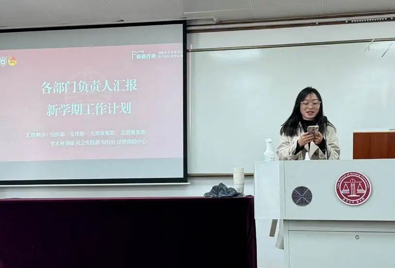 党委副书记马骏老师,团委书记路敏玥老师出席,院团委各部门负责人、知行社、法律援助中心负责同学参加会议。