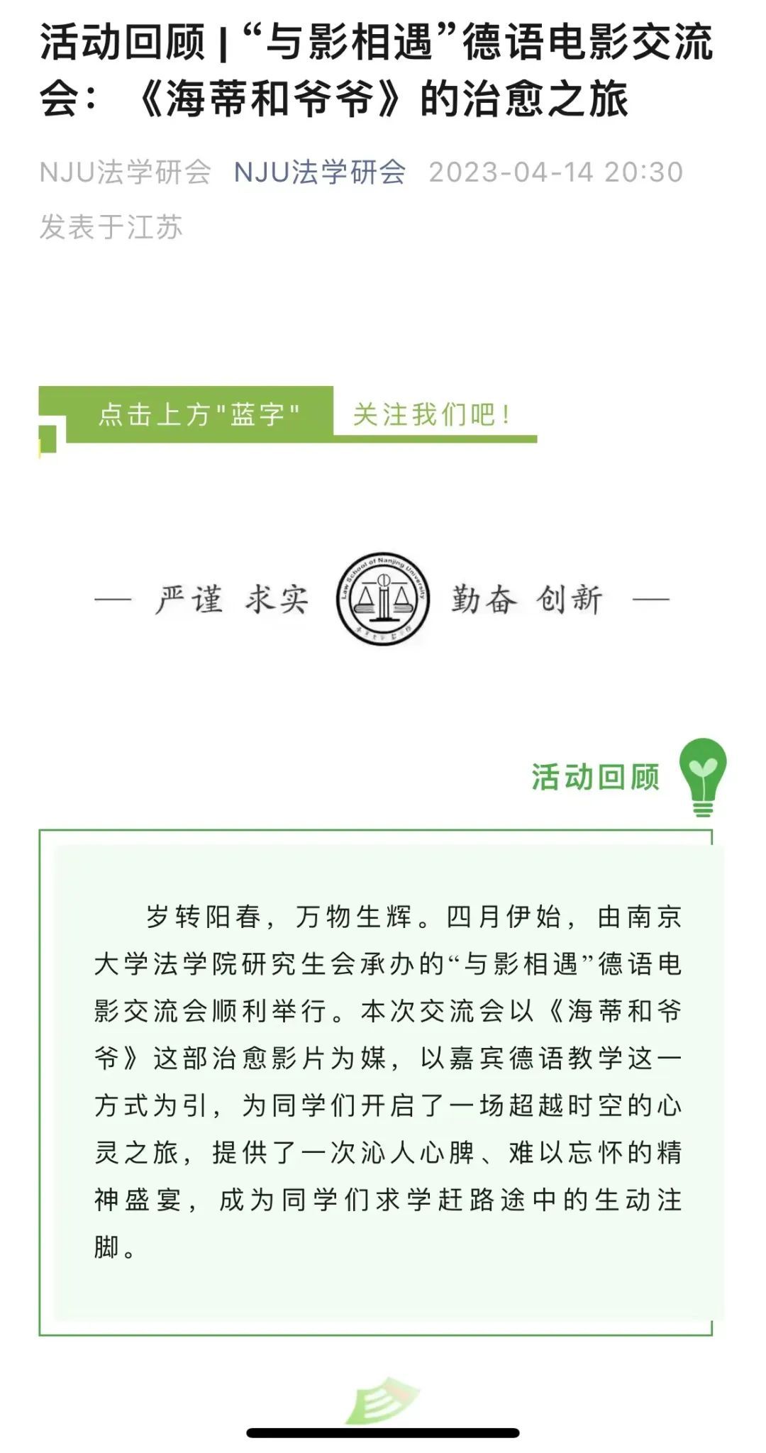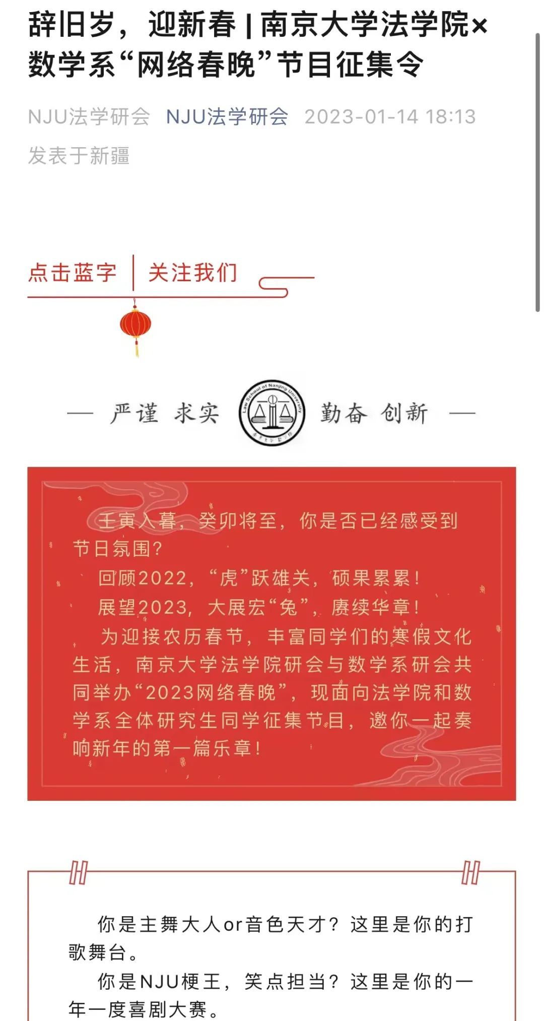 配音大赛,与浦口校区院系合办“小蓝鲸”音乐节。重视组织交流,与数学系研会合办网络春晚,参与艺术学院电影放映并作法律知识分享,与色情网站