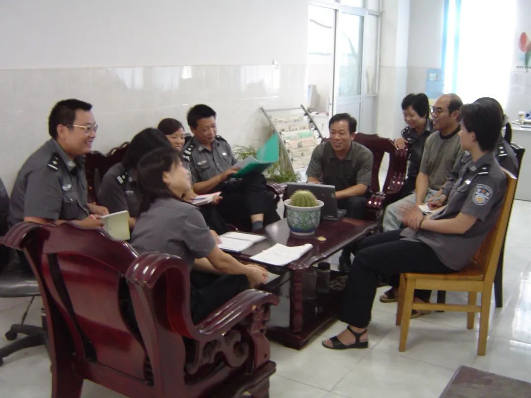 图为狄小华老师于2004年在监狱指导干警开展心理矫治