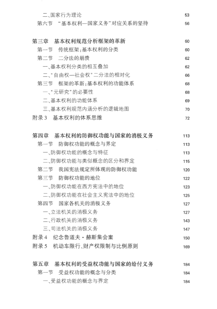 本书是基本权利总论领域的体系性著作,作者以“基本权利-国家义务”对应关系为理论出发点,对其进行分析介绍,进一步对基本权利规范内涵分析的框架进行重构,具体分析了基本权利的防御权功能与国家的消极义务、基本权利的受益功能与国家的给付义务、基本权利的客观价值秩序功能与国家的保护义务、基本权利的构成、限制、竞合与冲突问题。对基本权利的规范建构有助于厘清基本权利的规范内涵,使基本权利成为一个逻辑严谨、内容和谐的规范体系。