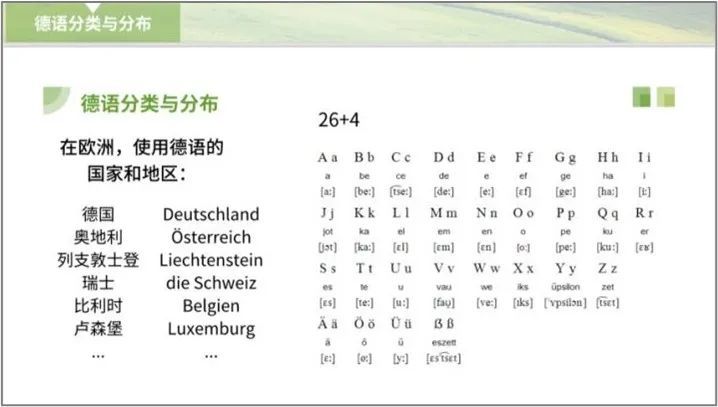 章文馨同学首先向大家介绍了影片的德语背景:因为影片的拍摄地在瑞士,所以片中的海蒂和爷爷展现的并非标准德语,而是瑞士德语。瑞士德语可以视为德语的一种方言,发音规则和语调都与标准德语有较多不同。随后,章同学为大家进行了德语字母读音的教学,并介绍了德语中常见的短句、词汇和语言习惯。