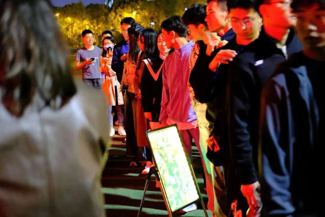 夜跑同学可前往打卡点合影记录自身变化,并扫描打卡点立牌上的二维码,将打卡照片上传至收集表中。夜跑工作人员将定期进行打卡次数统计,活动结束后,同学们可凭合影照兑换惊喜奖品。