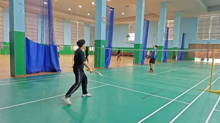 本次羽毛球赛为双打,以小组为单位,以团体赛为赛制,分为小组赛和淘汰赛两个阶段。同学们在报名后自由组队,进行了紧张激烈的比赛。双打比赛不仅考验着选手们的默契配合,更展现了他们高超的球技。比赛过程中,同学们展现了良好的团队协作能力与竞技精神。两院同学斗志昂扬,在赛场上挥洒汗水,每一次扣杀、每一次防守都引得场边观众阵阵欢呼,现场气氛热烈而有序。
