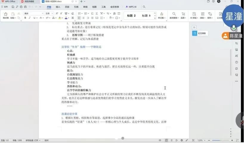 上学期末,陈星潼举办了期末备考经验分享会。刚开始现场氛围稍显拘谨,但陈星潼通过讲述自身学习历程中的趣事,迅速打破僵局,使同学们放松下来。在 “畅谈学习收获及困惑” 环节,同学们踊跃发言,提出在法学专业课程学习中的诸多难题。陈星潼认真倾听每一个问题,凭借扎实的知识储备和丰富经验,给出清晰且具操作性的解答。分享期末备考方法时,她详细介绍了构建知识框架、案例分析练习等备考技巧,还分享了如何通过制作记忆卡片,利用碎片化时间强化记忆法律条文的小窍门。整个过程中,同学们全神贯注,边听边记录,不时与陈星潼互动交流。