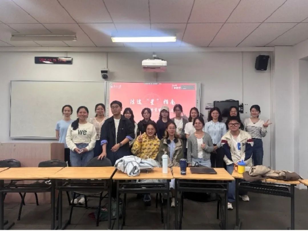 团总支组织开展“三室一厅”专项活动——法途“星”指南:朋辈解惑交流会。在前期需求调研的基础上,我们有幸邀请到施页川、郑博文、钱悦、熊子扬4位优秀的21级的学长学姐结合自身经历,就课程学习、实习经历、就业选择三大话题展开了分享与现场互动交流。