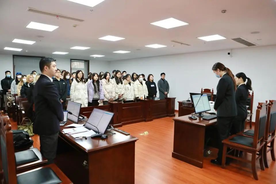 同学们在旁听席认真观看了庭审过程,在这个过程中了解民事诉讼的审理程序,感受法庭的庄严秩序,学习理论知识如何与实务相结合,更在司法实践中感受到了宪法基本原则以及法治精神贯彻始终:法治原则是宪法的基本原则之一,法治是将国家权力的行使和社会成员活动纳入完备的法律规则系统。在司法实践中,法治原则中的宪法优位以及独立审判原则得到了充分体现。