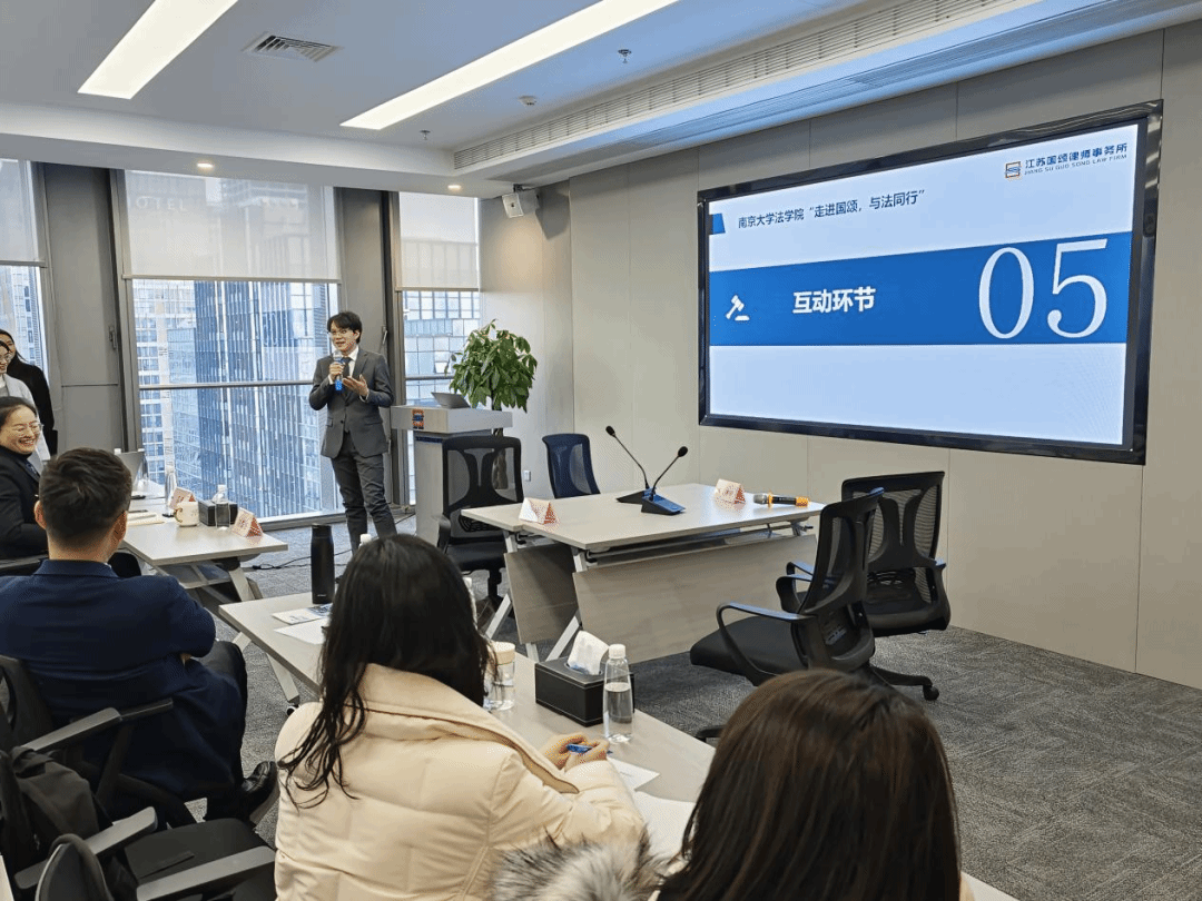 休息之后,江苏国颂律师事务所通过真人短剧的形式生动演绎了律师团队在接受委托、与当事人会面等环节中的沟通和辩护策略。整个演绎过程轻松活泼,让每一个同学亲身感受到律师工作的现实状况,同学们收获颇丰。