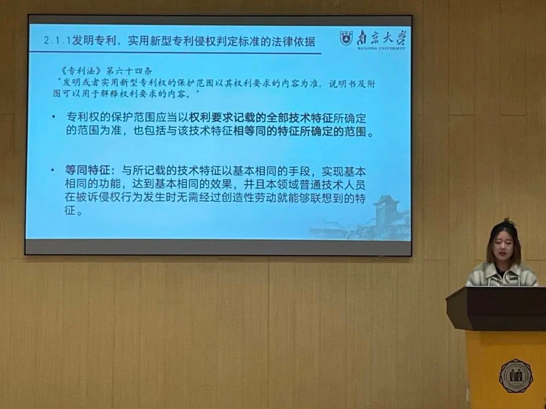 随后,为了让同学们对于专利侵权判断有更加清晰的认识,志愿者接着介绍了法律如何界定专利是否侵权,以及判定被诉技术方案是否落入专利权保护范围可以分为三步走。志愿者还向同学们介绍了如何做好专利侵权技术鉴定,分为诉讼中和诉讼外两种情况。为同学们应用知识产权相关法律知识维权奠定了扎实的基础。