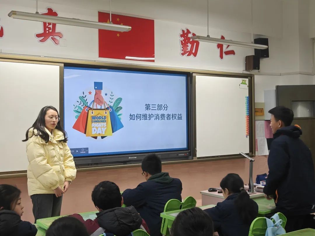 志愿者接着向小朋友们介绍了消费者享有的权利,重点介绍了安全权、知情权和反悔权,并辅以真实的案例帮助理解。志愿者还就如何维权与小朋友展开互动,考察他们解决实际生活问题的能力。最后,志愿者还以明星代言中的虚假宣传为例,加深了小朋友们对广告法的认识,提升了他们的维权意识。