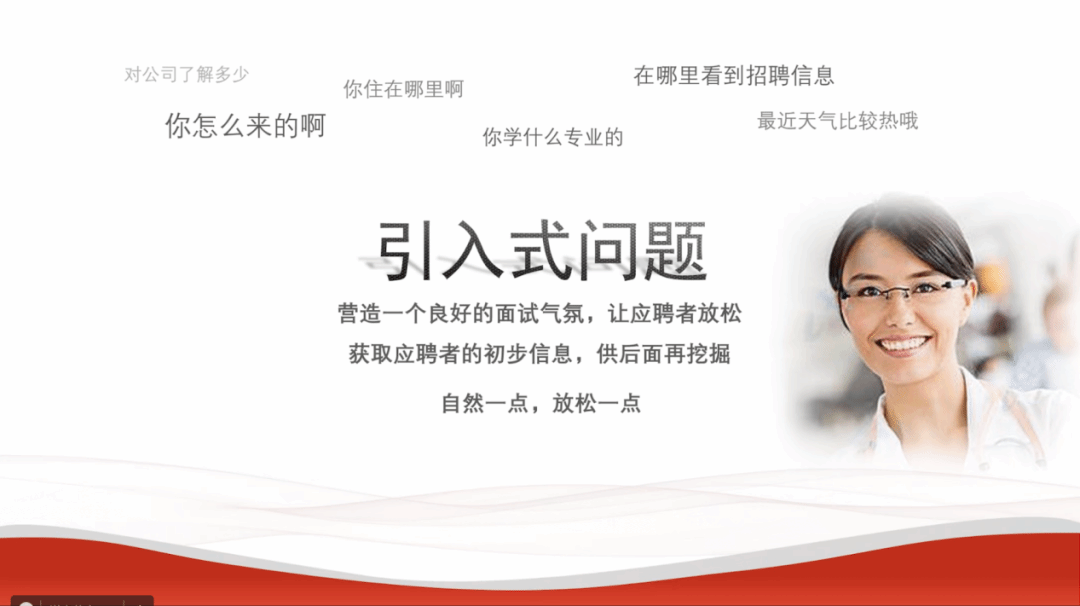最后,常经理通过分析常见的面试问题类型为大家讲解了面试策略。常经理主要介绍了引入式问题、行为式问题、动机式问题、情景式问题和压迫式问题五种面试问题类型。通过这些面试问题,常经理建议同学在面试过程中要有良好的应变能力,冷静并有条理地输出内容,增强协作意识和抗压能力,以应对面试中的多种挑战。