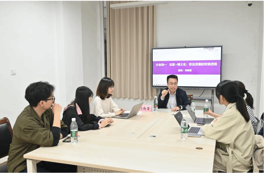 在“法官+博士生:职业发展的双维透视”分会场中,刘尚雷师兄结合自身经验,从职业规划、岗位特质、备考技巧等维度,深入剖析了法学生初入职场时需要注意的自我提升要点。他特别强调,青年法律人需以执行力为支点,将职业发展与法治共识深度融合,在实务深耕中筑牢专业根基,在价值坚守中明晰职业方向。
