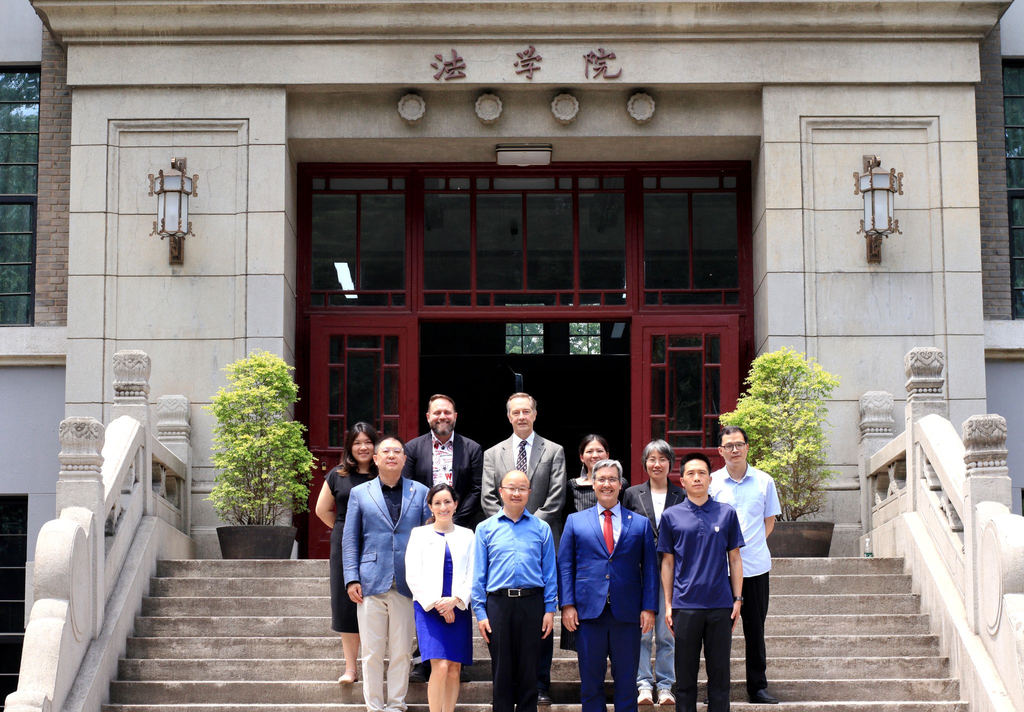 党委书记蒋恩铭、副院长杨阳、院长助理徐凌波、熊静波、校友代表马宁在西南楼227会议室热情接待了来访嘉宾,双方以涉外法治人才合作培养为主题,深入讨论了加强在LL.M.和J.D.项目上的既有合作,和共建中外合作办学项目的可能路径。会谈由杨阳主持。