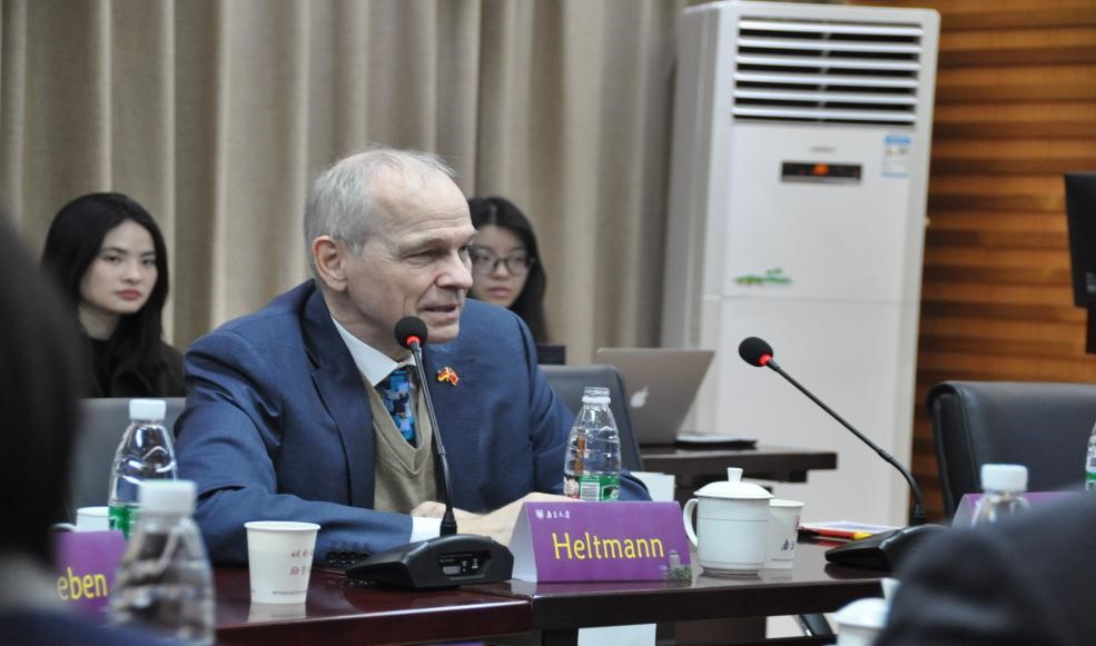 院长助理杨阳、中德所德方副所长雷博海(Peter Leibküchler)和中方行政副所长刘青文陪同客人参观中德所,并向客人介绍中德所的基本情况。中德所所长助理周梅和中德所其他在宁博士生、硕士生也参加了座谈。
