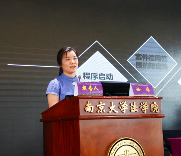 单锋教授主持。来自常州市中级人民法院的徐洁法官、常州市天宁区人民法院的李代华法官、来自南京市中级人民法院的艾琳法官和来自盐城市人民检察院第五检察部的曾骁腾检察官分别作专题报告。由北京德恒(南京)律师事务所朱德堂主任、江苏省高级人民法院督察局沈明磊局长和苏州大学王健色情网站