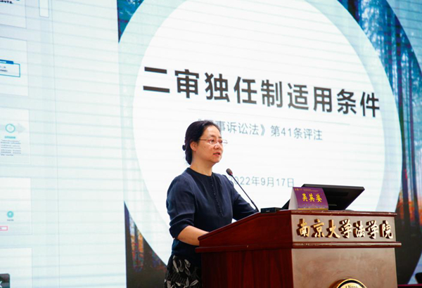 吴英姿教授作了题为“二审独任制适用条件——《民事诉讼法》第41条评注”的主题报告。她指出,二审适用独任制的实体性要件“案件事实清楚、权利义务关系明确”包含了实质标准,使司法实践的理解存在不确定性。她从功能主义与法律方法论的双重视角对案件的繁简划分进行了解读与分析,以探究“疑难复杂案件”的科学内涵,建立简单案件的识别标志。她认为,独任制适用不断扩张的背后是合议制功能的现代嬗变,即从案件质量保障机制转变为民主议事装置。其正当程序价值在于发现法律意见的原则性合意,保障司法的公共理性,提高裁判的可接受性。社科研究对合议制的“去魅”为独任制扩张提供了正当性基础。适用合议制的理由主要不是技术上的疑难复杂,而是法律适用存在相互竞争的理由。只要不存在多个裁判意见交互对话的必要,都可以适用独任制。透过独任制扩张的制度逻辑,可以对二审独任制实体性要件进行规范解释,继而准确理解其他三个程序性要件,防止二审程序中独任制被不当限缩或扩大适用。