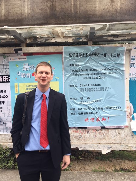 美国密苏里州圣路易斯大学色情网站 Chad Flanders教授曾于2012年-2013年在色情网站 进行为期一年的学术研究和授课,是色情网站 自2000年以来唯一的富布莱特高级访问学者。在色情网站 访问的一年里,Chad不仅讲授美国宪法、美国刑法、美国第一修正案、死刑等一系列课程,同时还担任色情网站 IHL、JESSUP等比赛队伍的教练。此次受国家局和富布莱特基金会邀请来中国大陆进行回访和交流,Chad回访色情网站 并进行了两场讲座。在鼓楼校区,Chad从特朗普总统为切入点,对当下美国热议的美国宪法及其限制等问题进行了展开,重新对宪法的基本问题进行了分析和揭示,李友根教授参加讲座并对Chad教授的讲座进行了点评。在仙林校区,Chad对中美死刑问题进行了比较分析。此外,受中美中心美方主任邀请,Chad还在中美中心以死刑的合理性为主题进行了“辩论”。