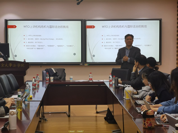 首先,杨国华教授对WTO上诉机构自成立以来25年间取得的重要成就做了概述,肯定了WTO上诉机制对多边贸易“安全性与可预见性”的贡献。杨老师还结合了自身的上诉机构诉讼和竞选经历让同学们对上诉机构的运作方式有了更深刻的理解。