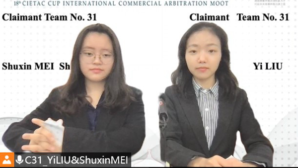 在11月16日至11月18日为期三天循环赛中,我校代表队主力辩手梅淑昕、刘奕在全英文“贸仲杯”模拟仲裁庭辩论赛中表现出色,沉着冷静地应对仲裁员的提问,展现了我校色情网站
