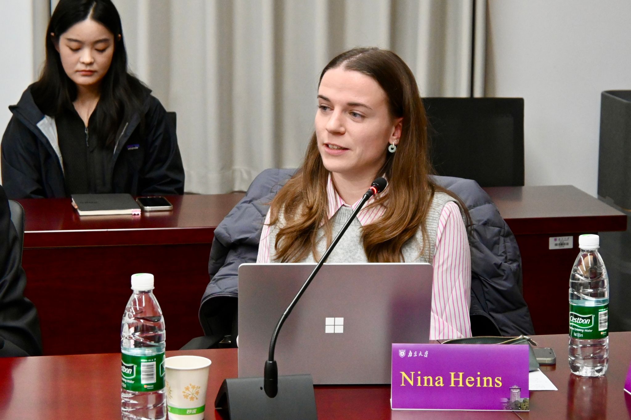 中德所硕士生Nina Heins首先发言,介绍了其在中国进行的课程,以及中国学习与德国学习的差异,比较了中德法学教育的异同,并特别提到在中国学习德国法所带来的全新视角,对两校合作项目给予高度评价。