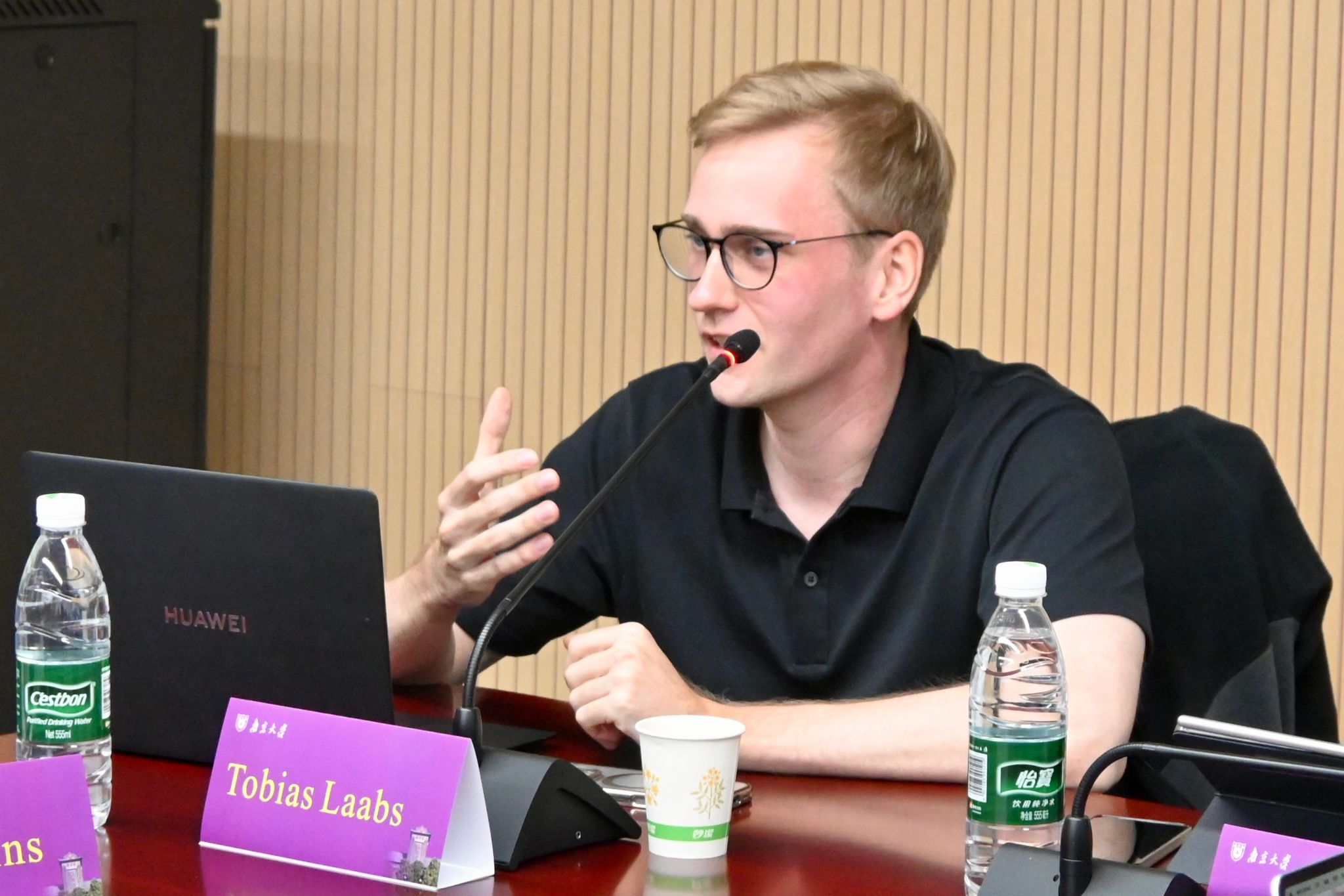 随后,Dr. Holger Hanisch向代表团就个人学术背景、教学计划以及履职愿景作了详细介绍。他表示非常荣幸能够以德方副所长的身份加入中德法学研究所这一高水平合作平台,并将积极推动两校在法学教育、学术出版及青年学者培养等方面的务实合作。