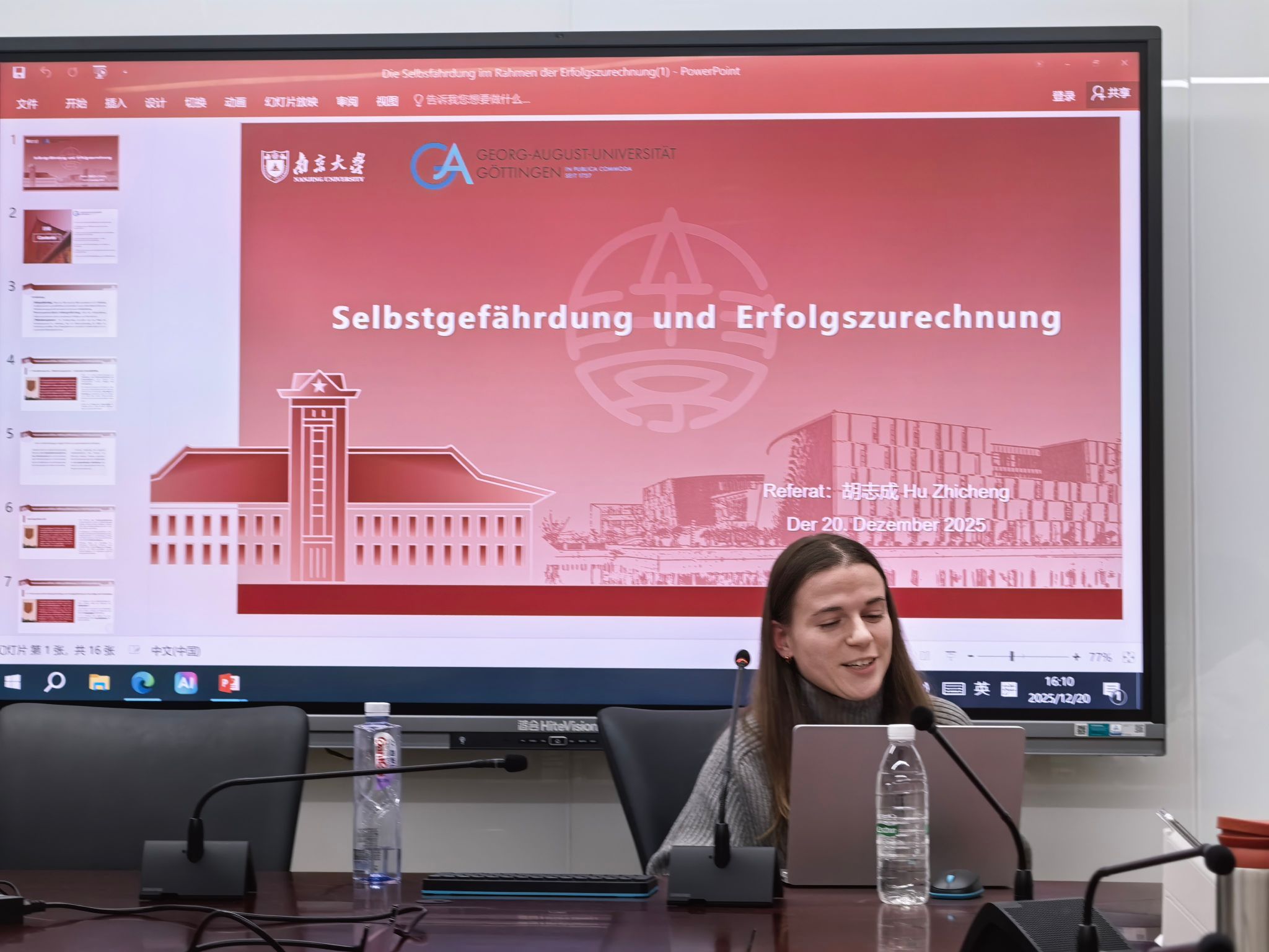 鼓楼校区西南楼135会议室举行。中德法学研究所德方副所长Holger Hanisch、中方指导教师徐凌波副教授、蔡琳副教授、助理教授金健老师以及中德法学研究所的2024级研究生共同参与了本次研讨课,研讨课全程用德语进行。
