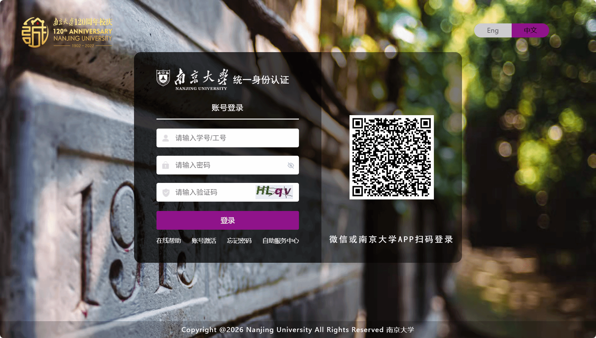 ”身份验证界面,输入工号/学号、密码(与学校统一身份认证平台即信息门户密码一致)。