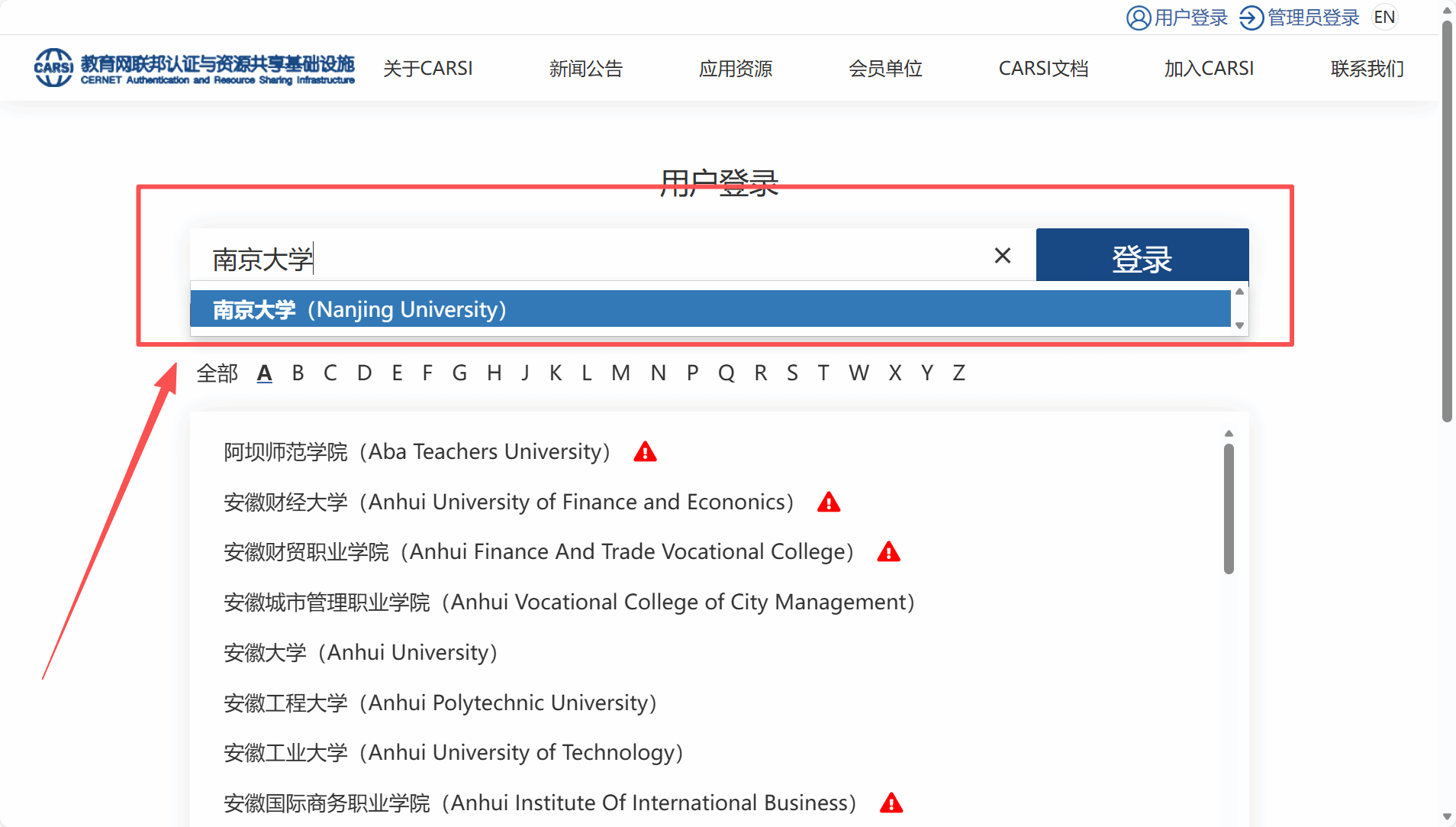 Carsi账户上,登陆方式如下: