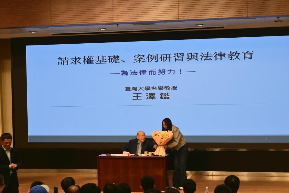 讲座伊始,叶金强教授对王泽鉴先生的到来表示诚挚谢意和热烈欢迎,并向现场师生简要介绍了王泽鉴先生的学术成就与影响。学生代表向王泽鉴先生献上鲜花。
