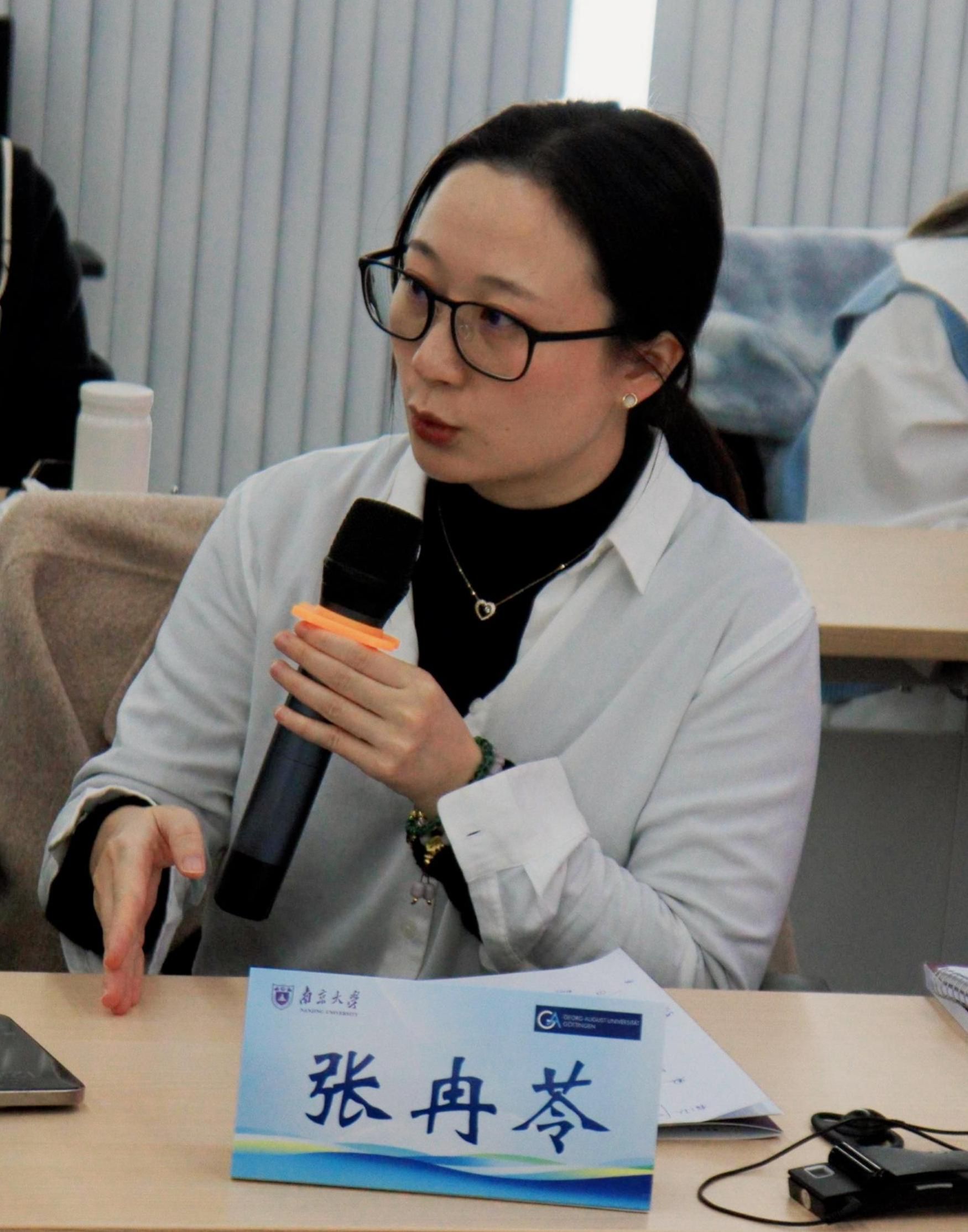 图8-14 克劳泽教授、冯洁语副教授、徐凌波副教授、刘畅研究员与郑慧、张苒苓、福格特三位报告人交流