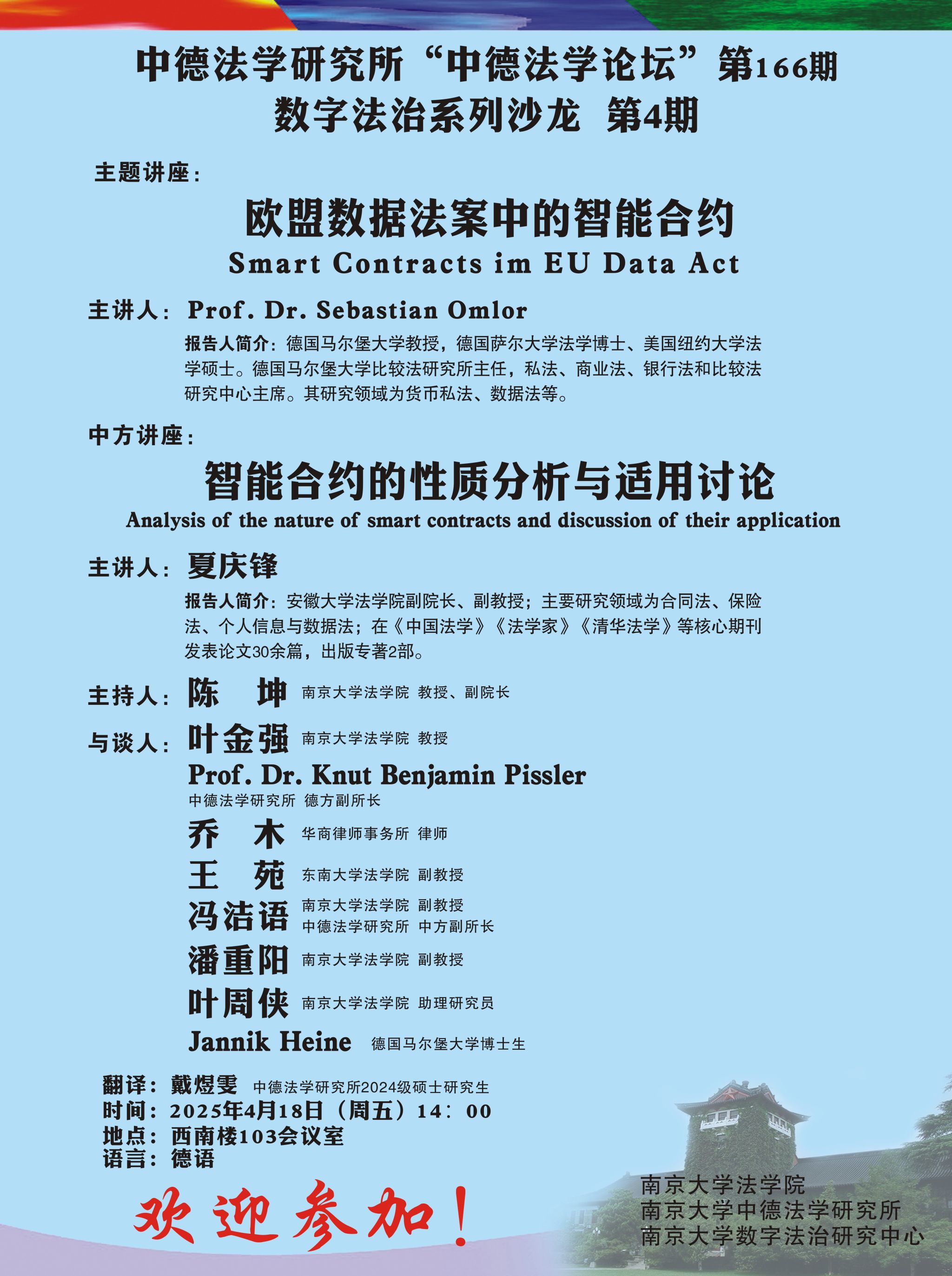 数字法治研究中心的邀请,德国马尔堡大学Sebastian Omlor教授以《欧盟数据法案中的智能合约》为题,安徽大学色情网站